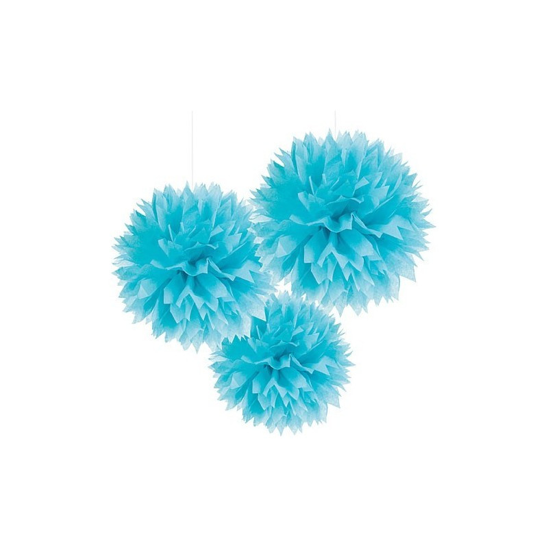 Blue Paper Pom Pom 3 Pack