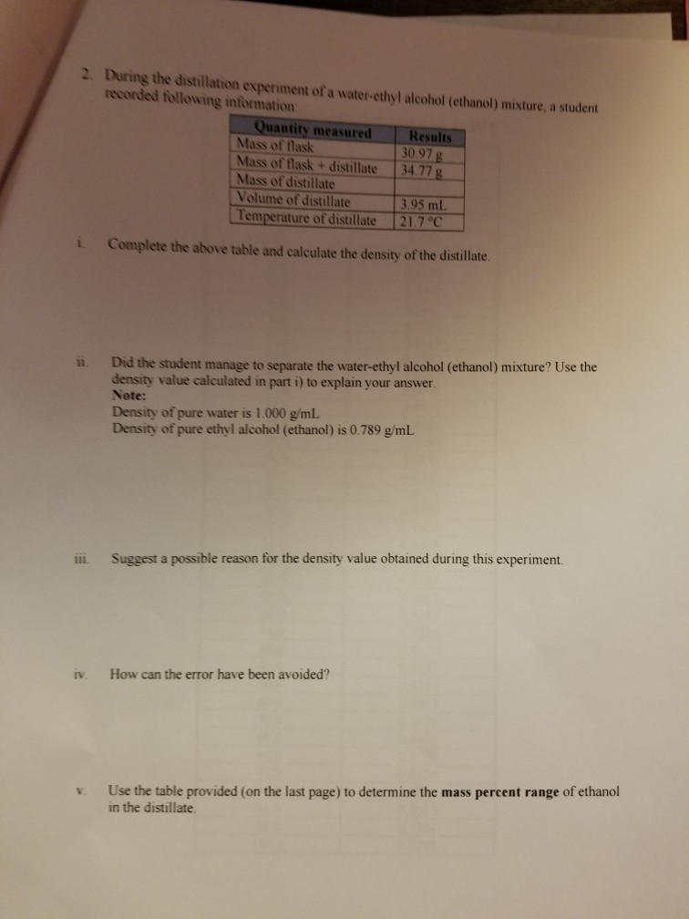 Solved Name Experiment 3 Distillation prelab (4 pts) 1) Distillation Pre-Lab Quiz Learn the definitions, formulas, and. Learn how to read a nomograph. study with quizlet and memorize flashcards containing terms like what is distillation?, what two processes are used in. evaluate the advantages and disadvantages of simple distillation as a purification method. quiz yourself with questions and answers for distillation pre lab quiz, so you can be ready. Distillation Pre-Lab Quiz.