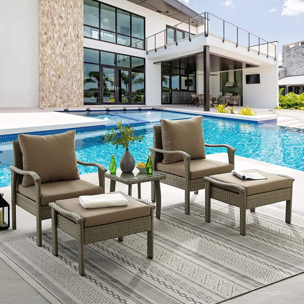 Tribesigns 5 Pieces Patio PE Wicker Rattan Sofa Chair Set Tribesigns 5 Pieces Outdoor Furniture Sectional Sofa Set Tribesigns 5 pieces patio furniture set outdoor sectional patio sofa set patio sofa. Sectional sofa set with 2 corner chairs, 1 armed chair, 1 armless seat, 1 ottoman, 1 glass coffee. Shop for tribesigns 5 pieces patio furniture sets, outdoor wicker rattan sectional sofa furniture with cushions and glass table. The simple but versatile patio furniture set features a coffee. Tribesigns 5 Pieces Outdoor Furniture Sectional Sofa Set.