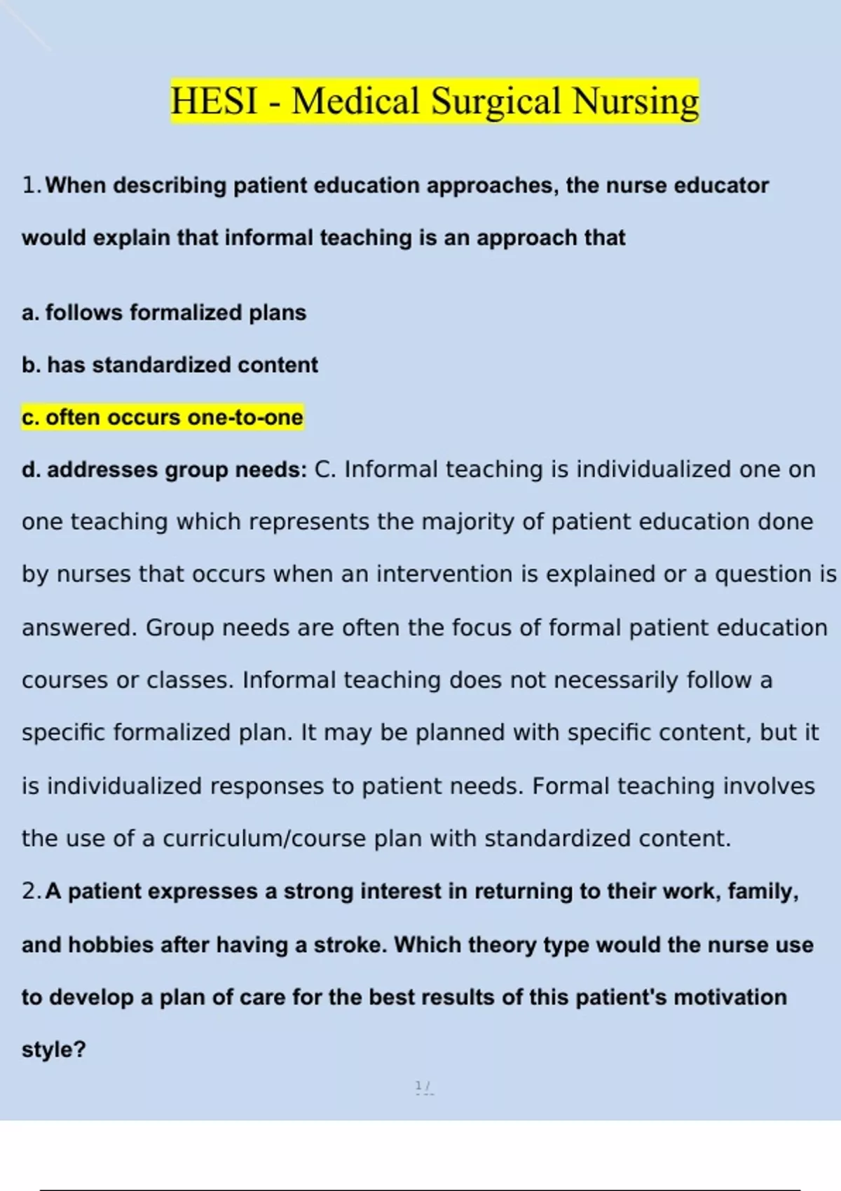 HESI Medical Surgical Nursing Questions and Answers (2024/2025