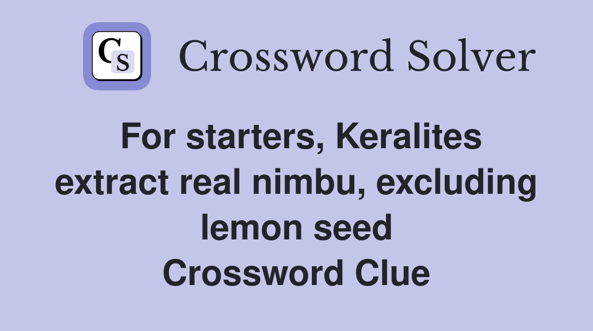 For starters, Keralites extract real nimbu, excluding lemon seed Extract Juice From Crossword Clue We have found 40 possible answers for this clue in our database. There is one answer total, ream is the most recent and it has 4 letters. Here is the answer for the crossword clue extract (juice from a fruit) (7). We have found 40 possible answers for this clue in our database. The best solution is ream, a synonym. Extract Juice From Crossword Clue.