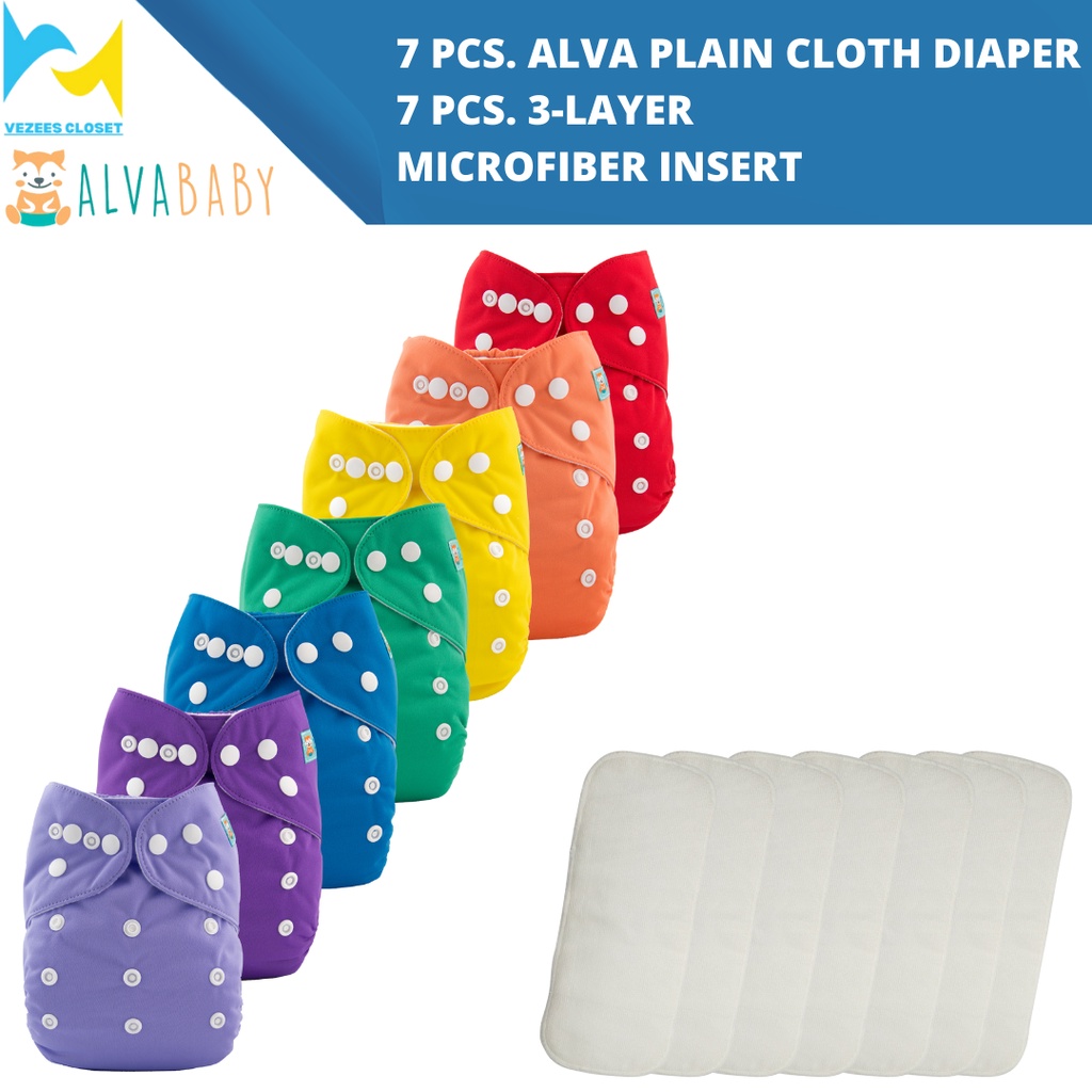 Alva BABY Plain Colors 7 SET with Microfiber Insert 7 SHELL DIAPER 7