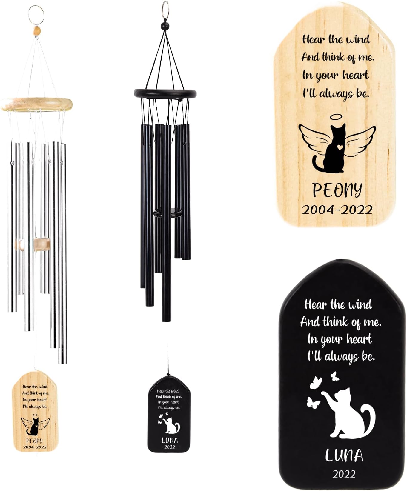 Cat Memorial Wind Chime Personalized two cat with butterfly memorial wind chimes gifft for loss of cat | customized name chimes with suncatcher for outside |. Cat pet memorial wind chime, 24 inch pet sympathy wind chimes memorial gifts for pet owners, pet loss gifts, cat remembrance gift. A thoughtful gift for anyone who has lost a faithful feline friend, this handsome wind chime. Cat Memorial Wind Chime.