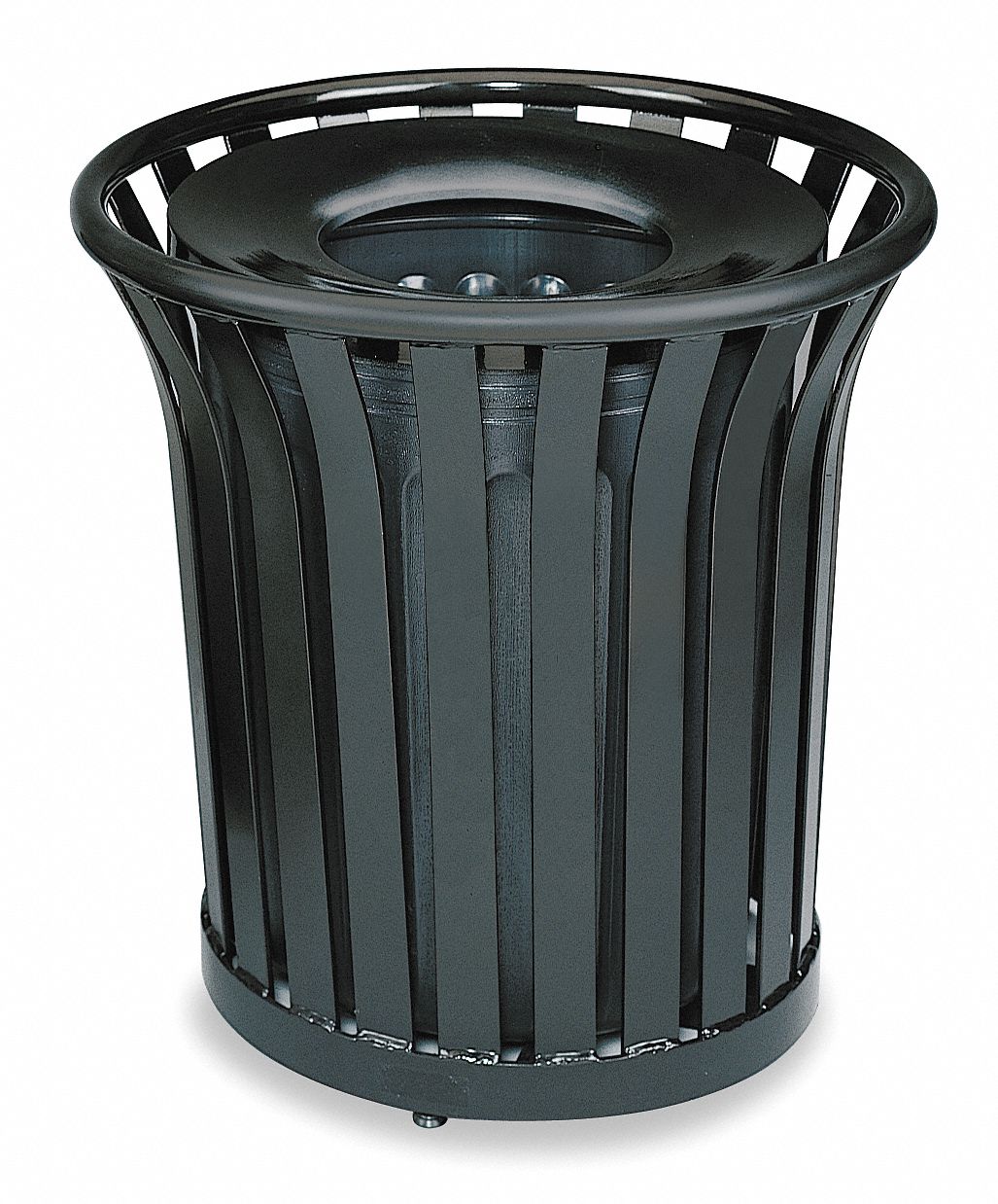 RUBBERMAID COMMERCIAL PRODUCTS 36 gal Round Trash Can, Metal, Black
