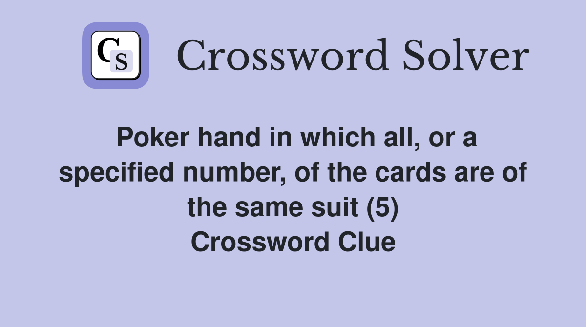 Hypnosis' tag could be one with purple poker flowers (5,6) Crossword Poker Table Action Crossword Clue Here is the answer for the crossword clue poker table action featured on october 8, 2024. Please find below the poker table action crossword clue answer and solution which is part of daily themed classic crossword august 19. Solve your poker table action crossword puzzle fast &. Did you find the answer for poker table action? Did you find the. Poker Table Action Crossword Clue.
