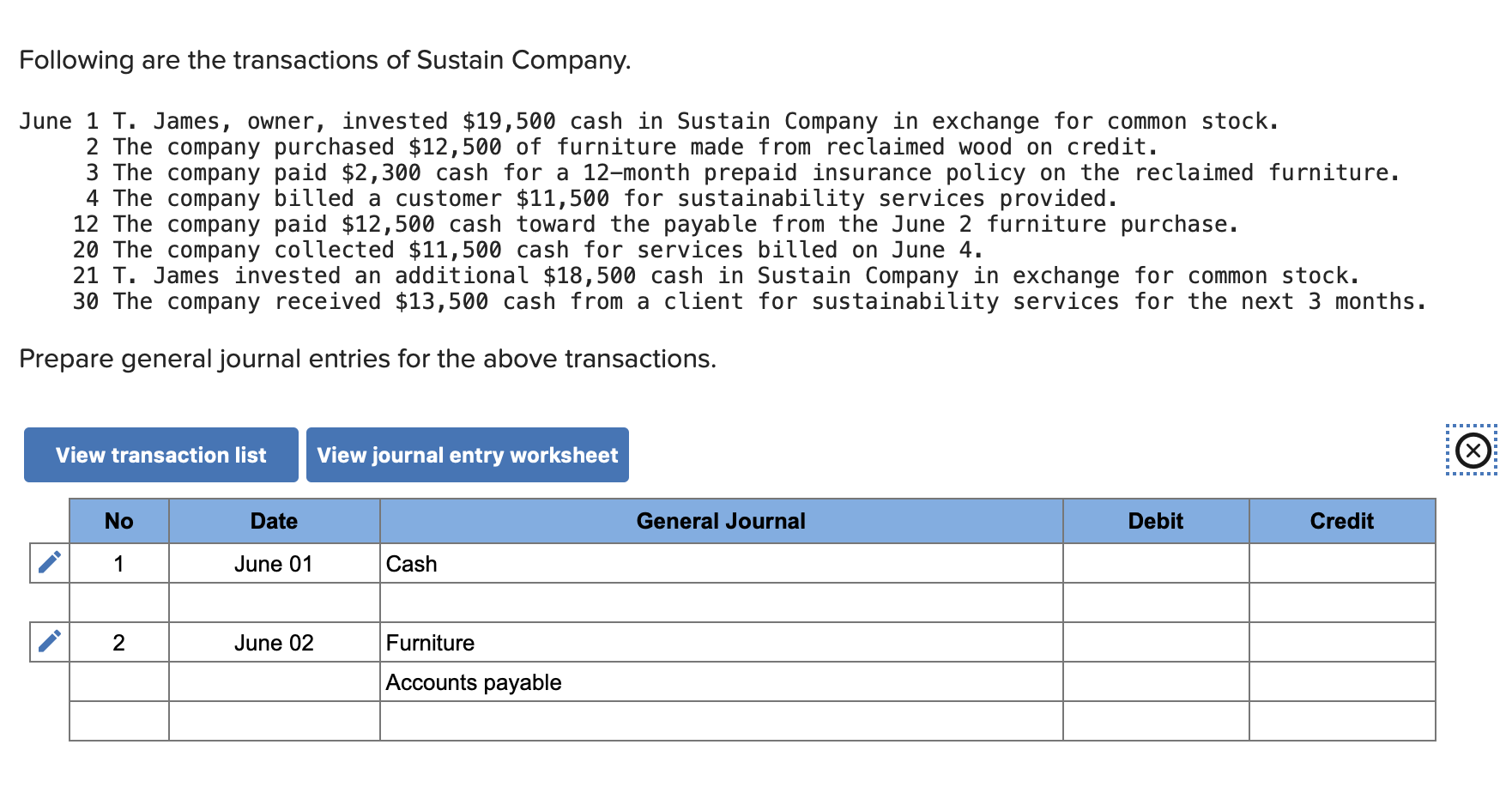 Solved Following are the transactions of Sustain Company.