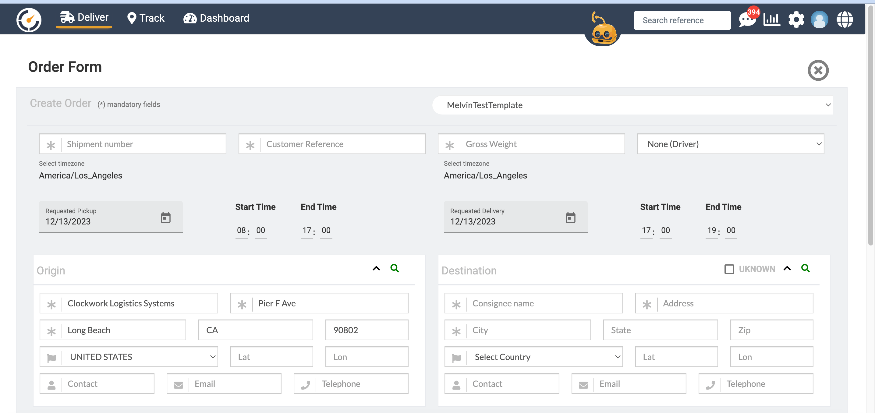 Create a shipment Command Console Clockwork Logistics Systems