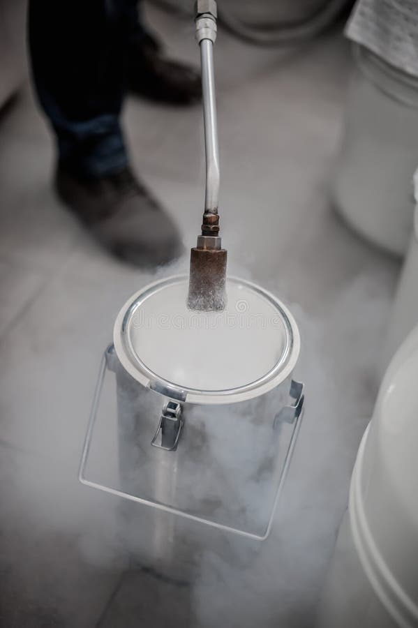 Liquid Nitrogen Technician Fills Container Stock Photo Image of barrel, neon 82906360