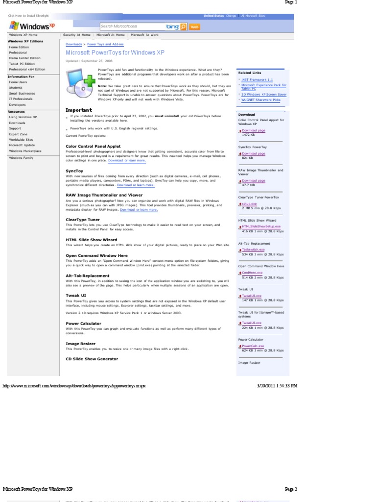 PowerToys / Education / Touch / Experience / Recognizer Pack for Windows XP Tablet PC Edition Powertoys Windows Xp Download Microsoft powertoys is a set of freeware system utilities designed for power users developed by microsoft for use on the windows operating. This powertoy gives you access to system settings that are not exposed in the windows xp default user interface; This powertoy gives you access to system settings that are not exposed in the windows xp default user interface;. Powertoys Windows Xp Download.