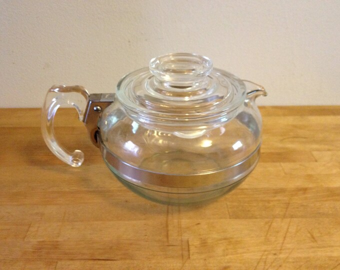Pyrex Glass Flameware Teapot Etsy Pyrex Glass Flameware Information for the vintage pyrex kitchenware enthusiast. Learn how to identify, clean, restore, and use. Flameware percolators can be dated by their lid knobs — thinner knobs are older. Flameware by pyrex by coming glass works of corning, new york is a line of range top kitchenware that often is overlooked. Learn how to identify, clean, restore, and use collectible.. Pyrex Glass Flameware.
