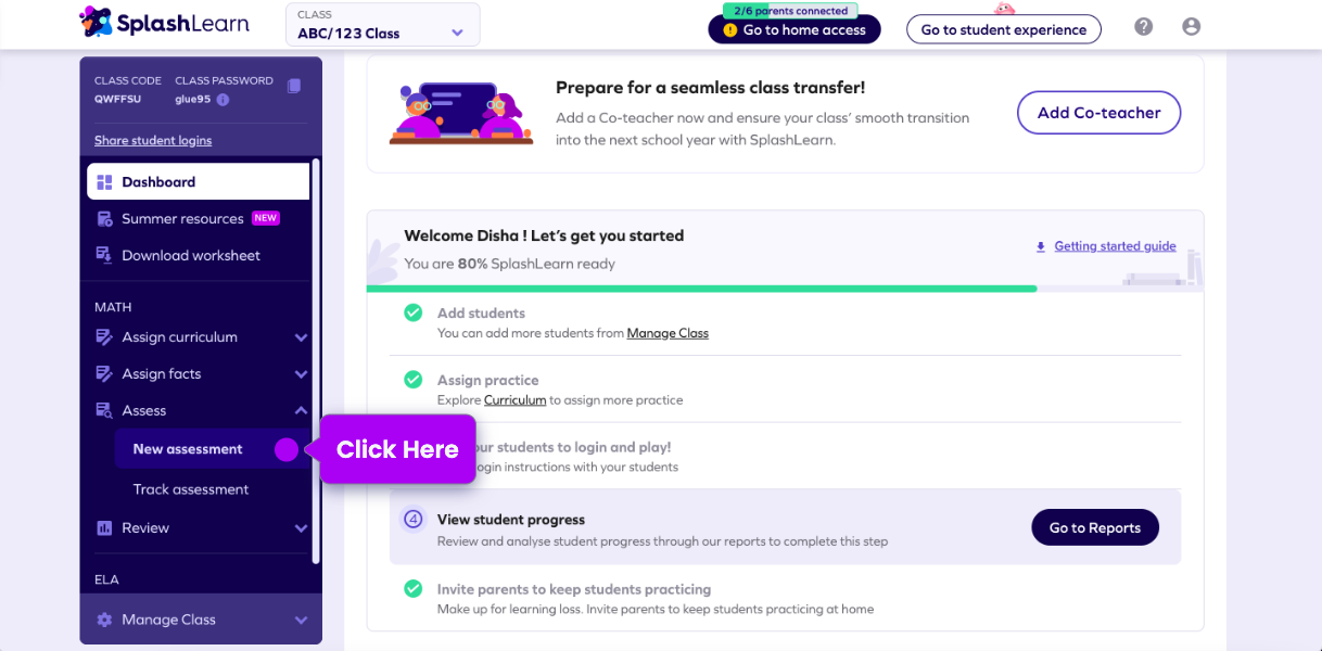 How can teachers assign an assessment? SplashLearn Splashlearn From My Teacher Splashlearn is an award winning math program used by more than 40 million children for fun. Select the teacher/parent tab. How to delete a parent account? How admins can add, promote and transfer the classroom? Splashlearn is completely free for teachers. Splashlearn offers a range of features and benefits to support educators and students:. Login to your splashlearn account here.. Splashlearn From My Teacher.