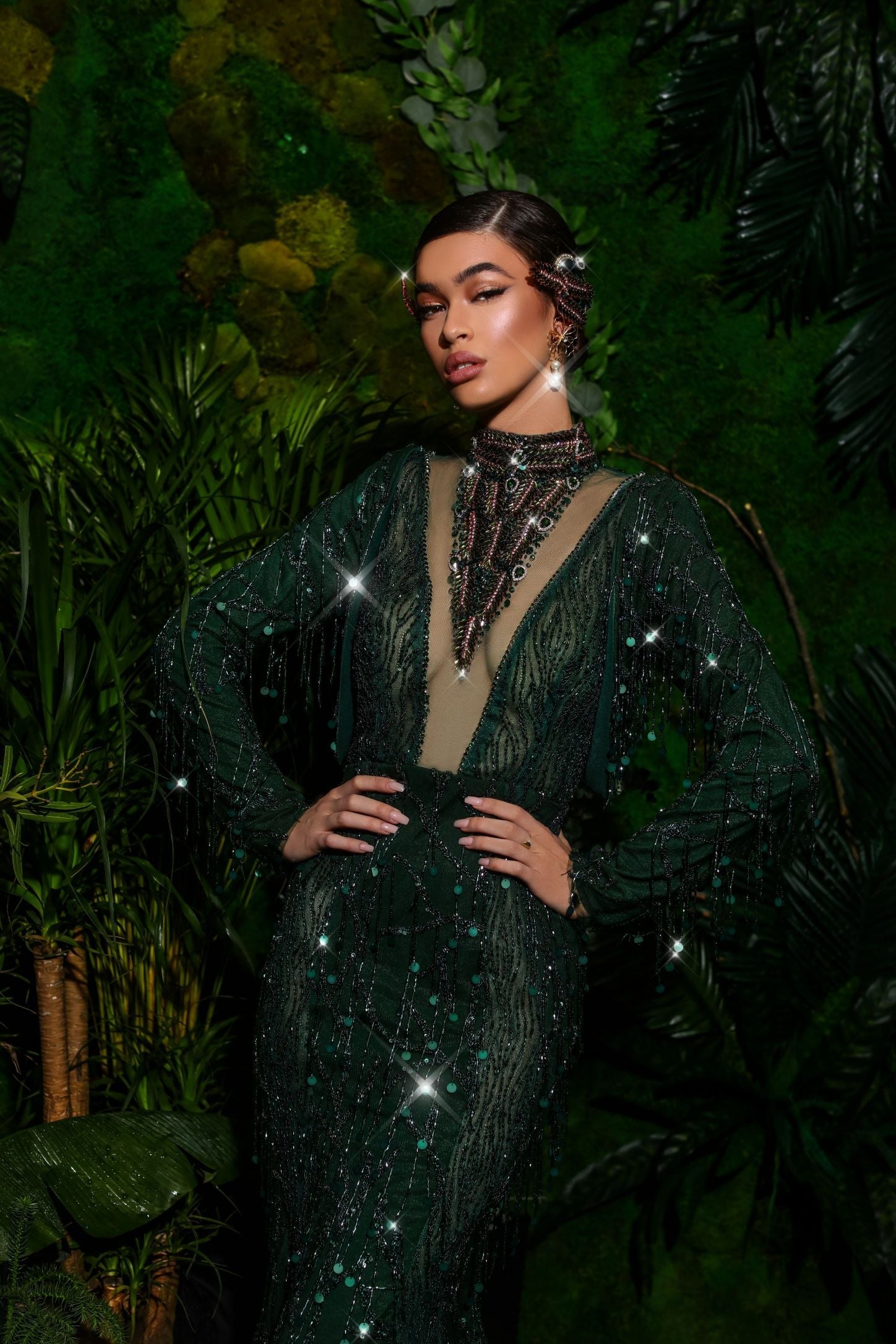 Green Long Embroidered Dress Walone Fashion Group LLC