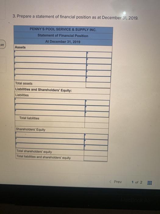 Solved 3. Prepare a statement of financial position as at