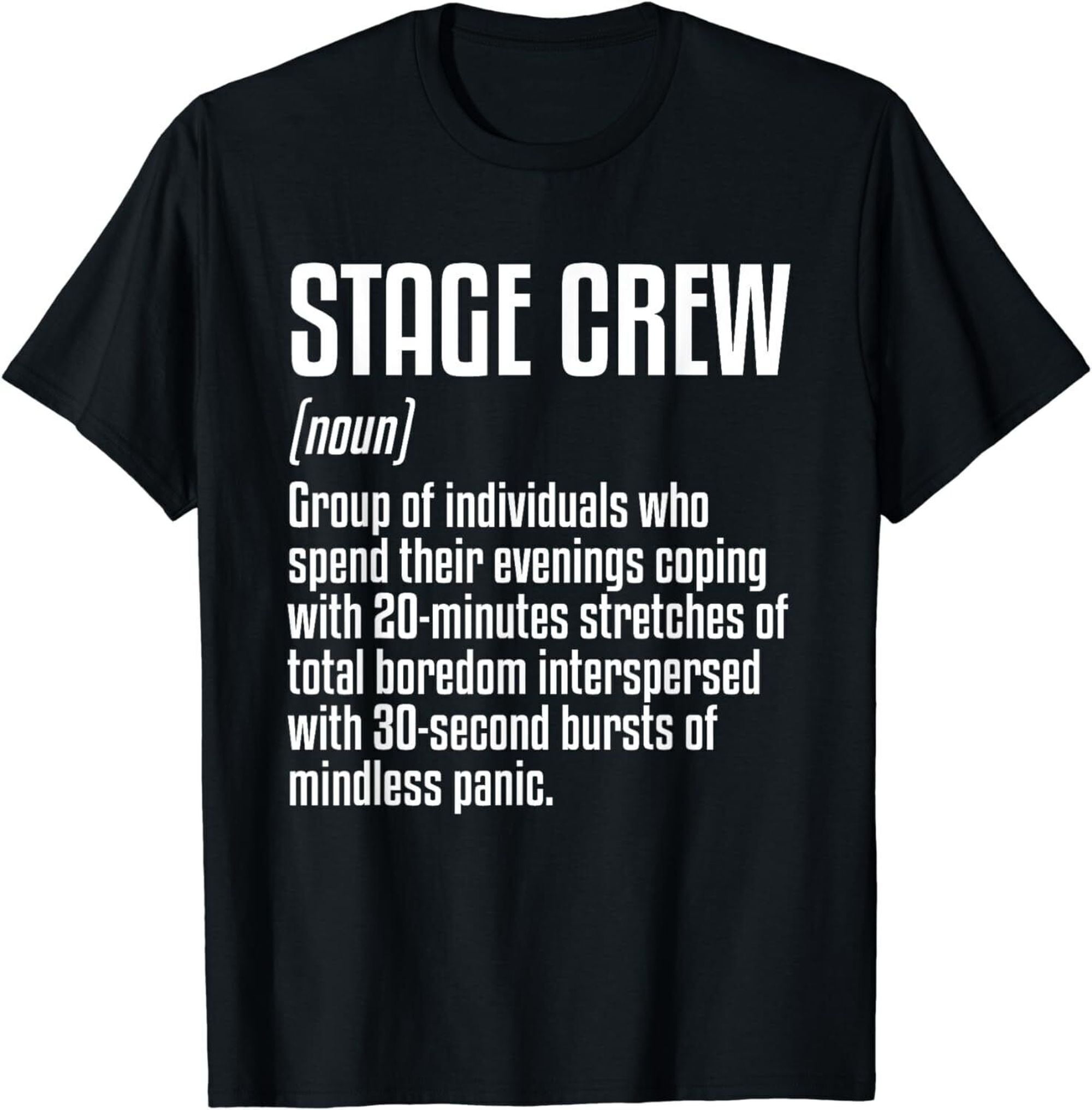 Theater Stage Crew Definition TShirt Stage Crew Theatre Definition Members of the stage management team who are based on the stage and help with scene changes, props and furniture. To make it in the theater, you'll need to master the lingo. From blocking to standby, here are 60+ theater terms and. Backstage crew members are also referred to as stagehands, stage crew and/or stage technicians. Stage crew, also known. Stage Crew Theatre Definition.