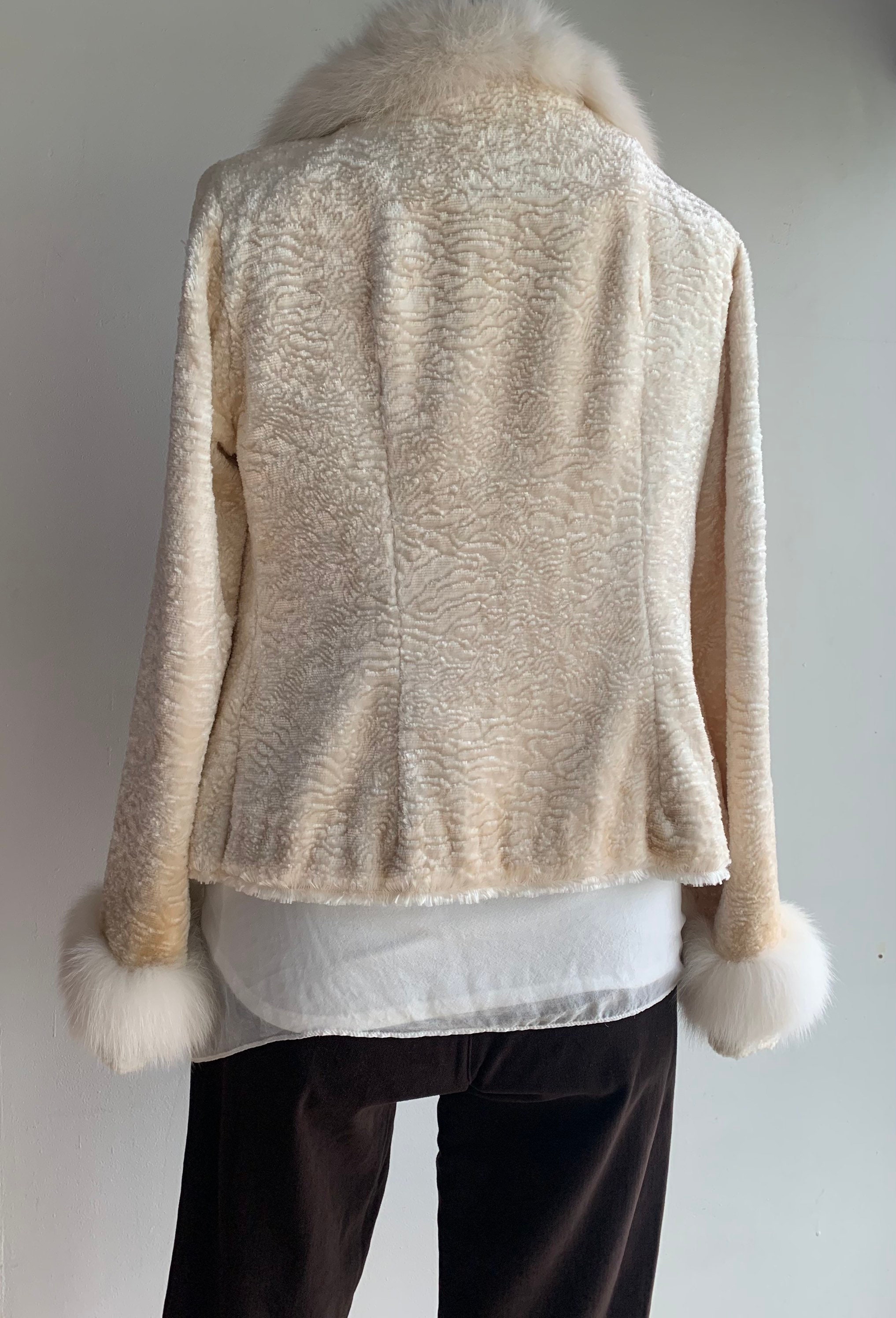 90s 2000s Metallic Velvet & Faux Fur Trim Coat/tyber Brand Made in