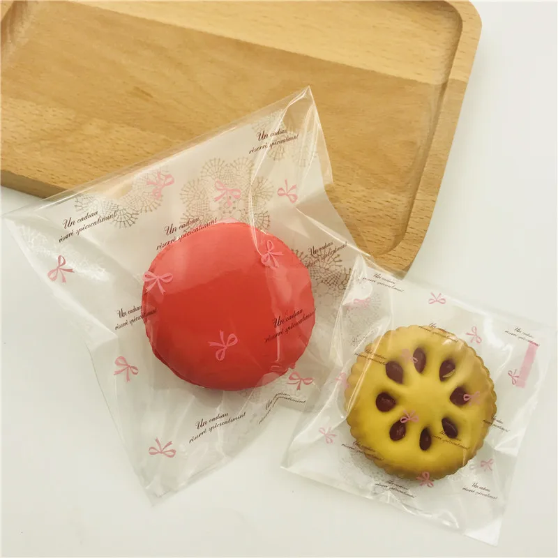 2 sizes 100pcs Plastic Cookie Bags Lace Bow knot Cookie Bag Wedding Cake Candy Macaron Packaging