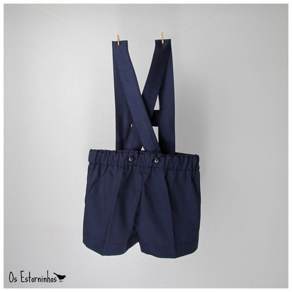 Boy Shorts Overalls Navy Blue cotton twill Shortalls with