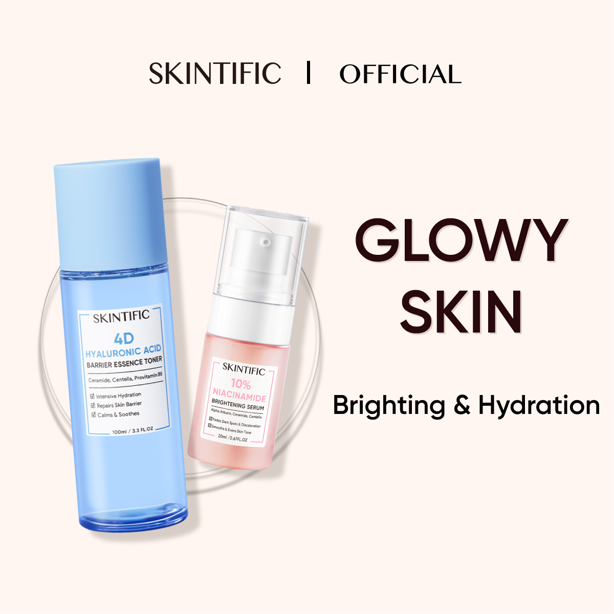 SKINTIFIC Glowy Skin Set / 4D Hyaluronic Acid (HA) Barrier Essence Toner & 10 Niacinamide