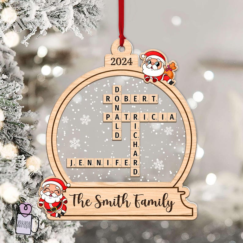 Personalized Family Christmas Ornament, Family Crossword Ornament 2024