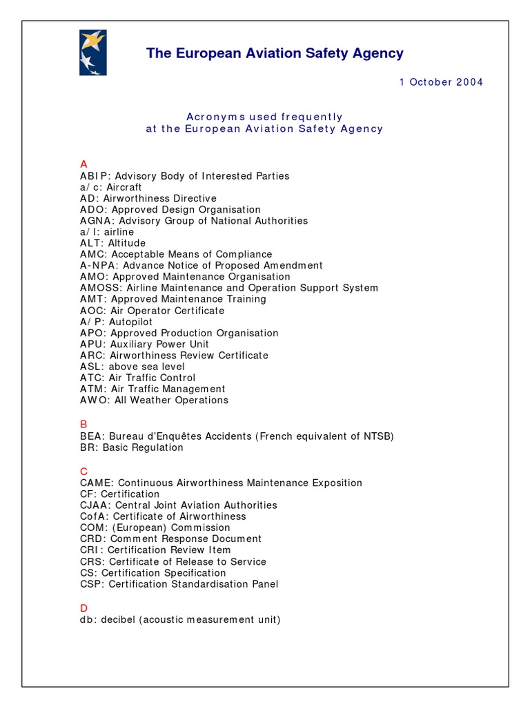 European Aviation Safety Agency Acronyms Aviation Safety Aircraft
