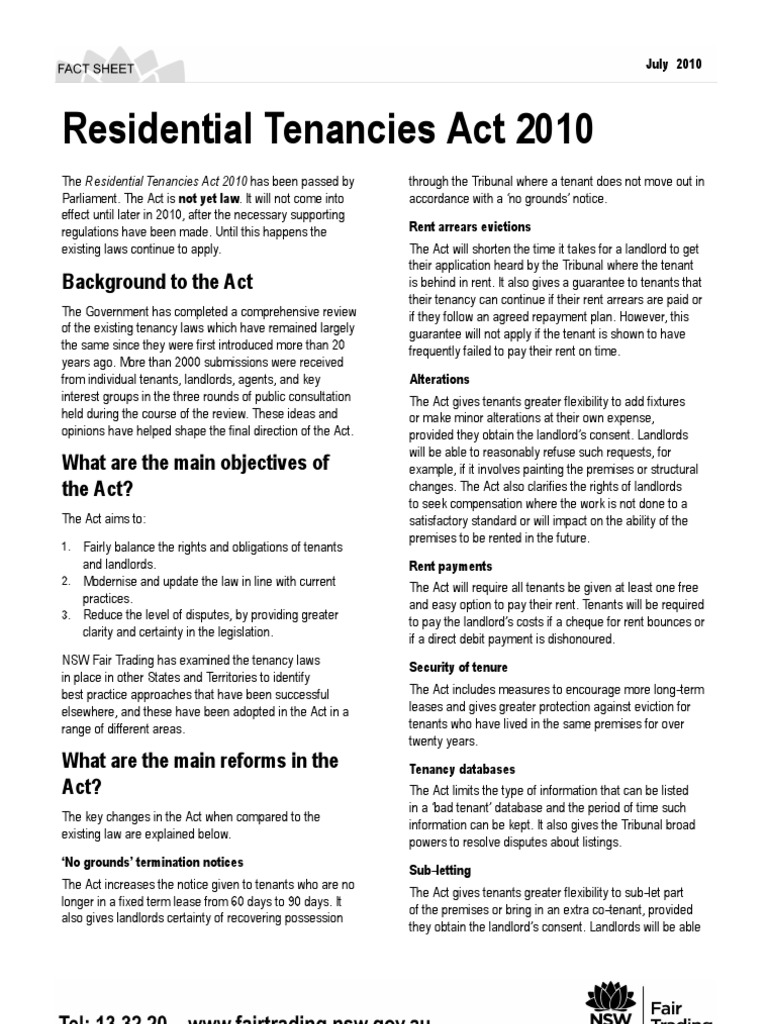 Residential Tenancies Act 2010 PDF Leasehold Estate Landlord
