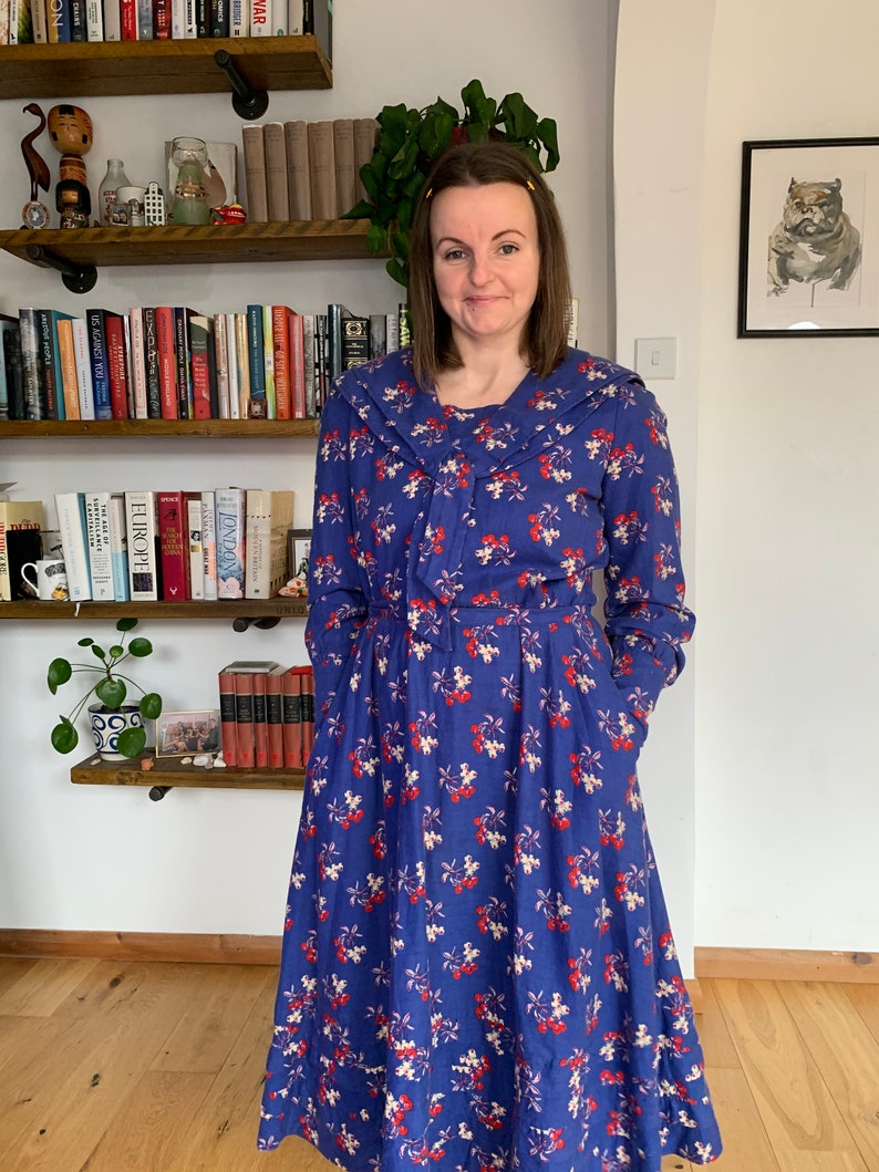 Vintage Made in Wales Laura Ashley Dress Sailor Collar Size Etsy UK
