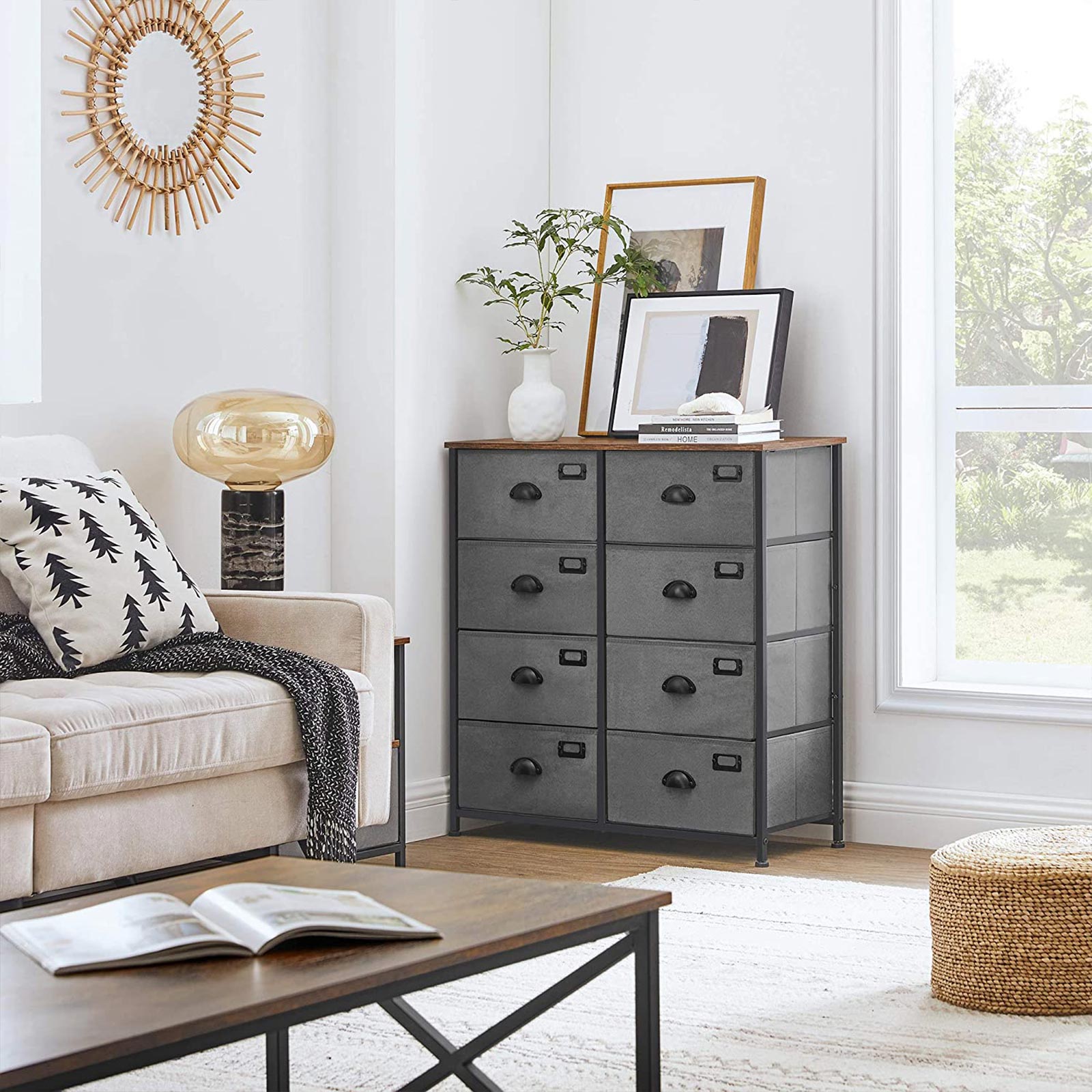 SONGMICS Rustic Vertical Dresser Drawer, Storage Tower, Industrial