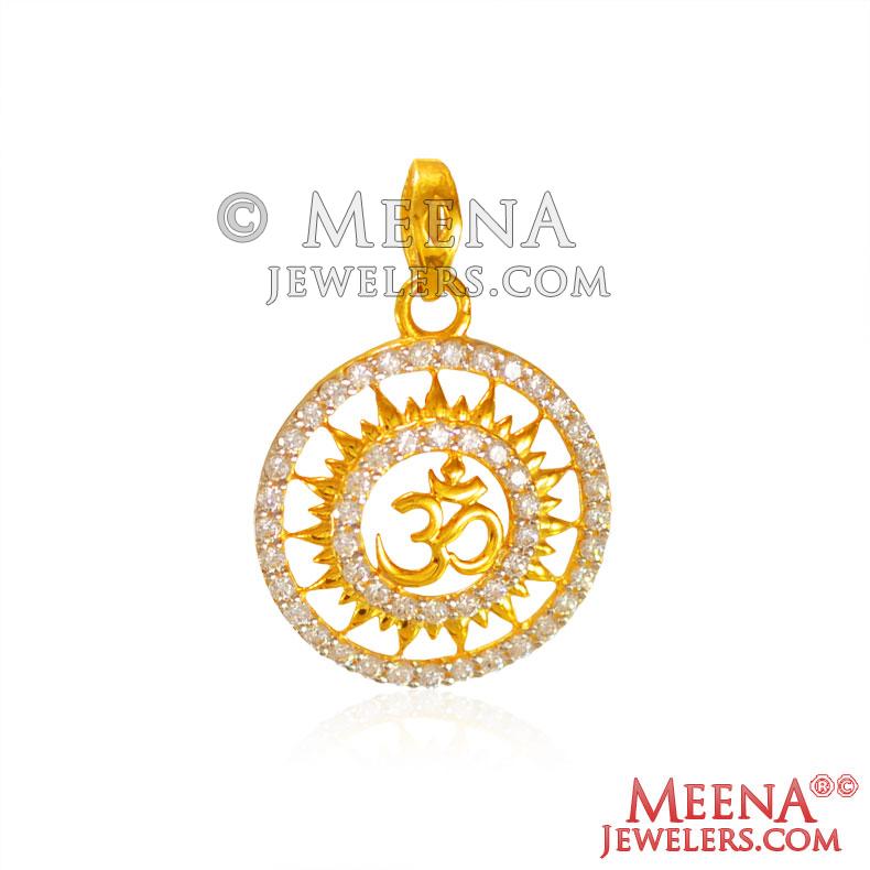 22 kt Gold OM Pendant PeOm27048 US 407 22 kt Gold OM Pendant is studded with cubic
