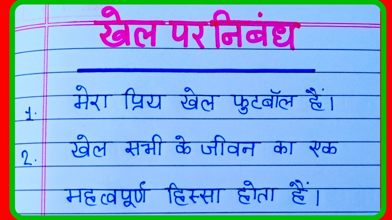 खेल पर निबंध/Khel Par Nibandh Hindi Mein/5 Lines Essay on Game in Hindi YouTube