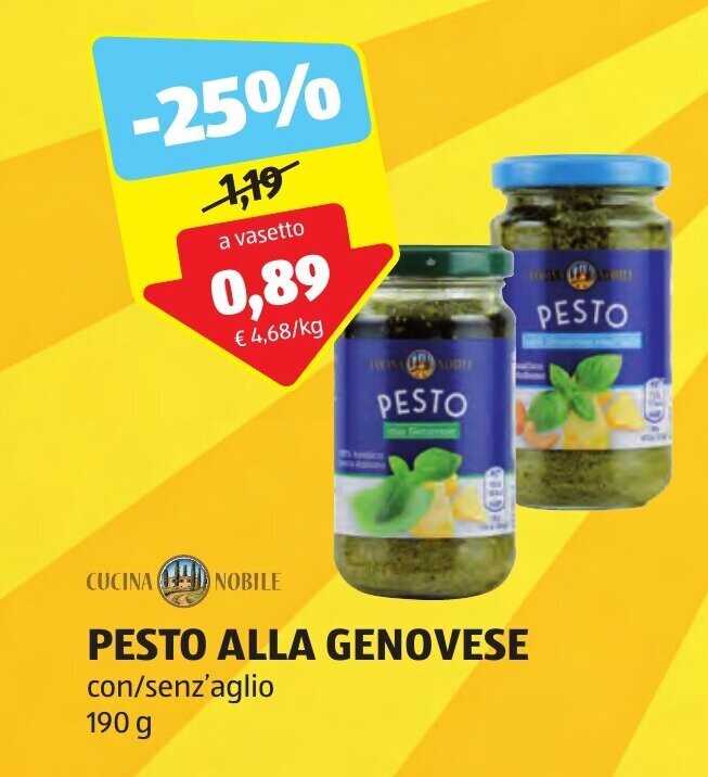 CUCINA NOBILE PESTO ALLA GENOVESE con/senz'aglio 190 g offerta di ALDI