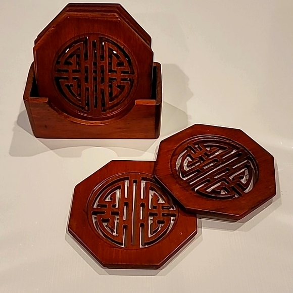 Bo's Attic Dining Bos Attic All Wood Oriental Coasters Set Of 6