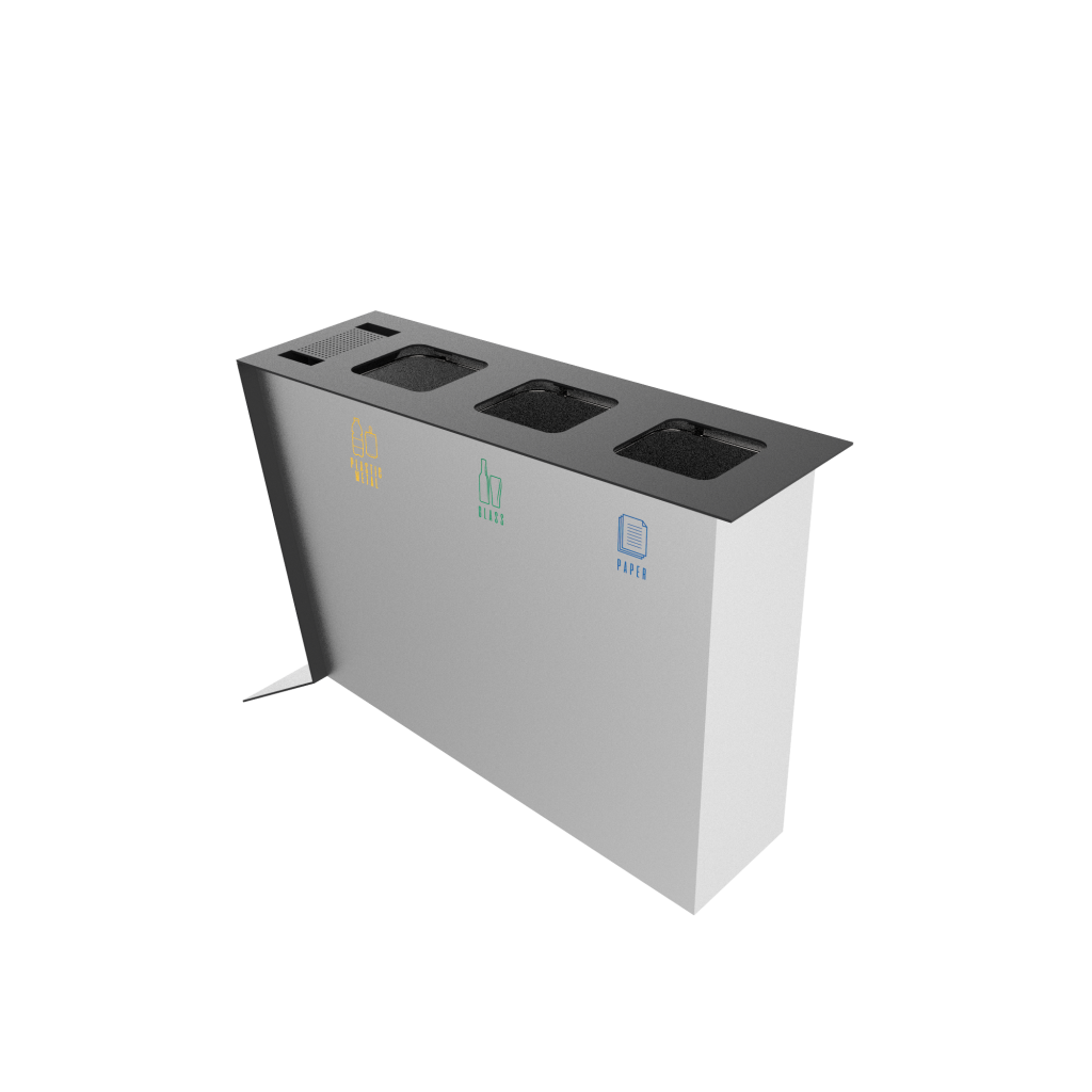 NOATAK SST modern stainless steel recycling station with ashtray Binsignia