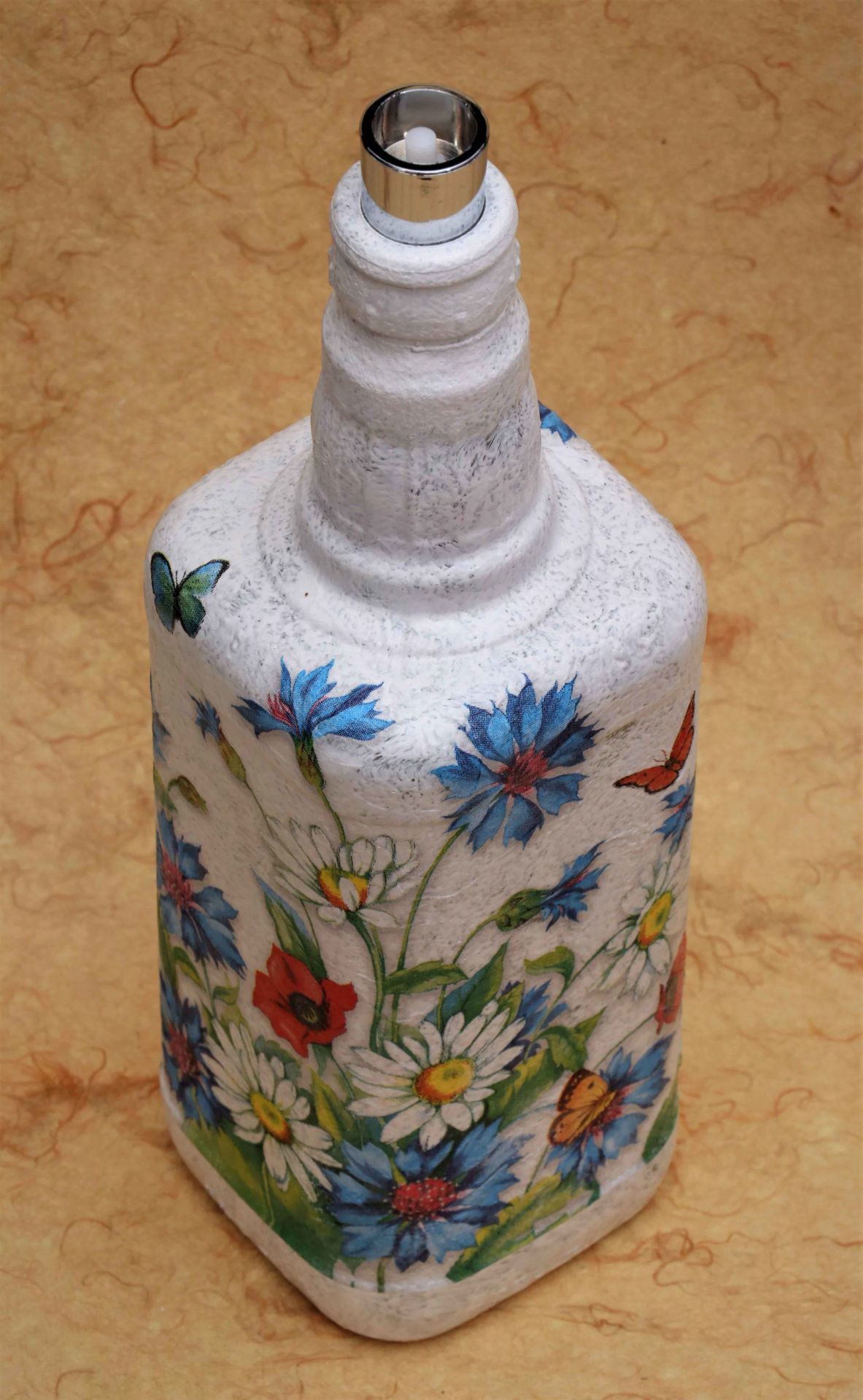 Daisies on glass bottle decoupaged Buy Authentic Indian Buy Decoupage Bottles Check out our decoupage bottles selection for the very best in unique or custom, handmade pieces from our seasonal decor shops. When you’re finished with your decoupage project, simply. If you're looking for a simple yet rewarding diy project, decoupaging a glass bottle might be just the artistic endeavor you need. Check out our glass bottle decoupage selection for the. Buy Decoupage Bottles.