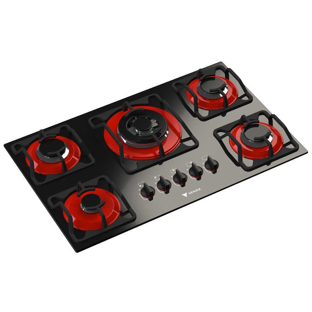 Cooktop 5 Bocas a Gás Venax Arena, Tripla Chama, Vermelho ACT550