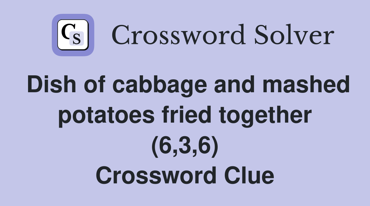 Dish of cabbage and mashed potatoes fried together (6,3,6) Crossword