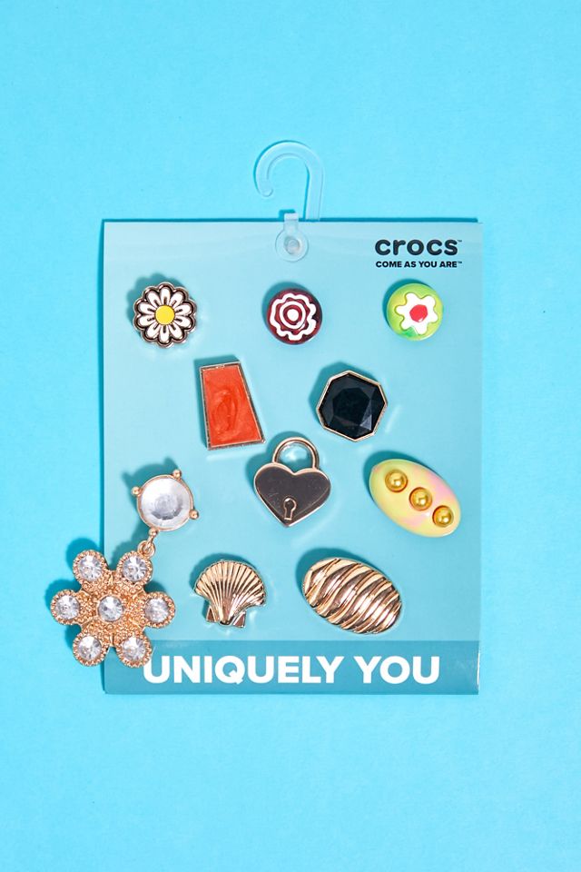 Crocs Jibbitz GoldTone Jewel 10Pack Urban Outfitters UK Jibbitz For Crocs Gold Free shipping both ways on crocs jibbitz from our vast selection of styles. It's the perfect addition to your favorite pairs of clogs, slides, and more. Show off your style & customize your crocs with jibbitz shoe charms! Make a statement & accessorize your crocs with jewels & metals jibbitz. Pop some personality into your shoes with this gold hoop. Jibbitz For Crocs Gold.