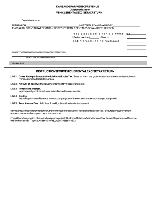 Fillable Form Vr1 Vehicle Rental Excise Return printable pdf download