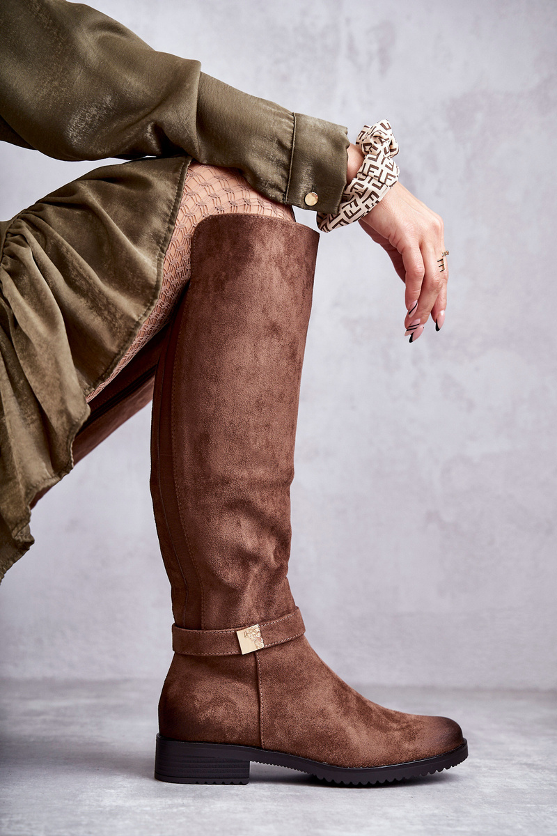 Women's Suede Flat Heel Boots Brown Henrike Cheap and fashionable
