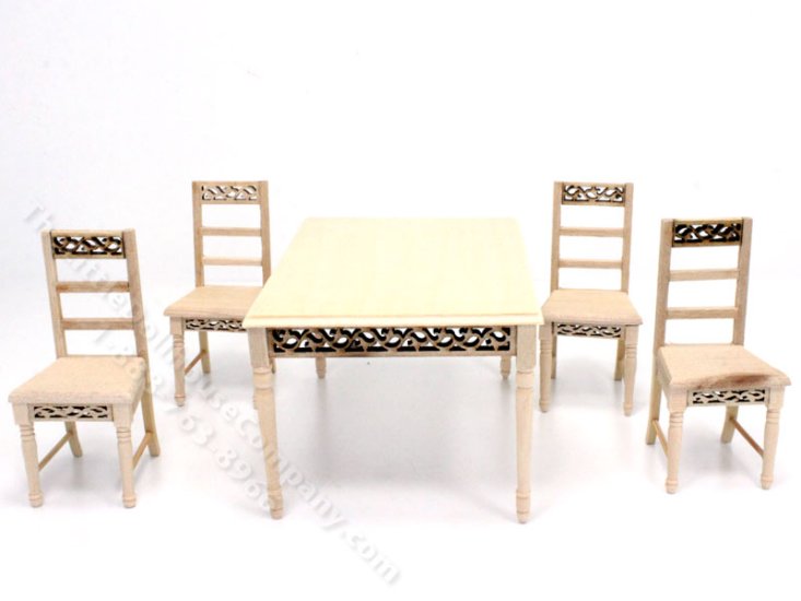 Miniature Unfinished 5pc Dining Set for Dollhouses [VIL DiningSetUF