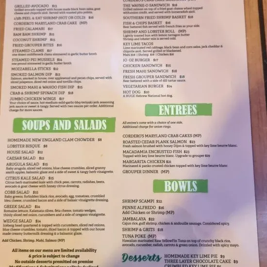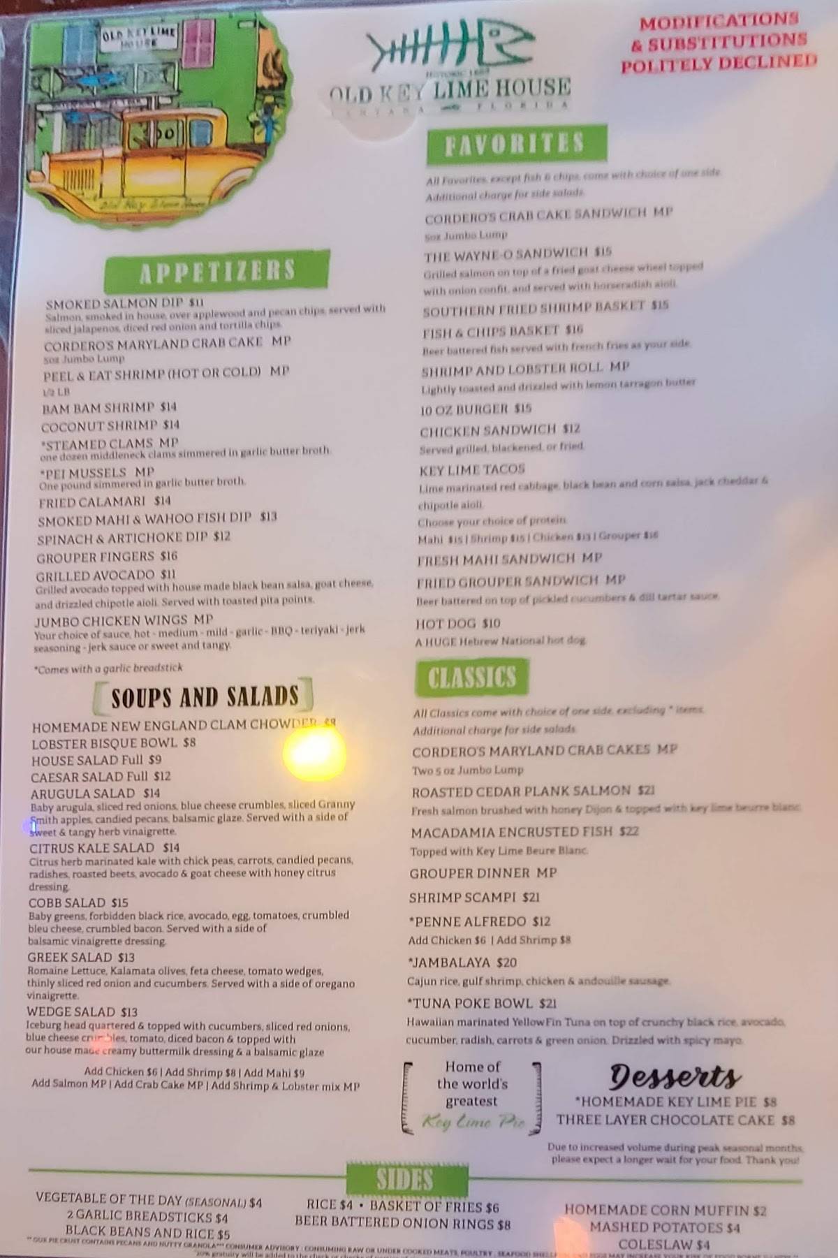 Menu for Old Key Lime House in Lantana, FL Sirved