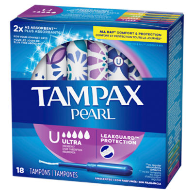 TAMPAX Pearl Ultra Absorbency Unscented Tampons, 18 count