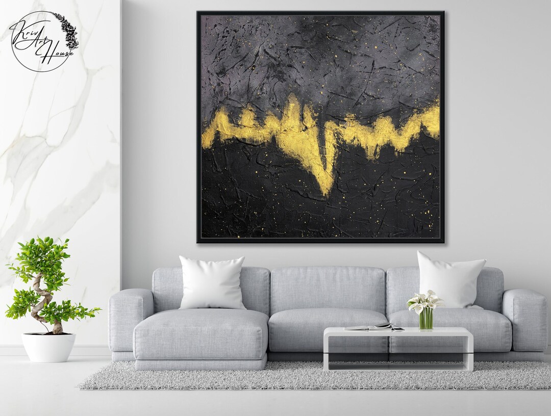 Large Original Abstract Art Office Wall Decor Black and Gold Wall Art