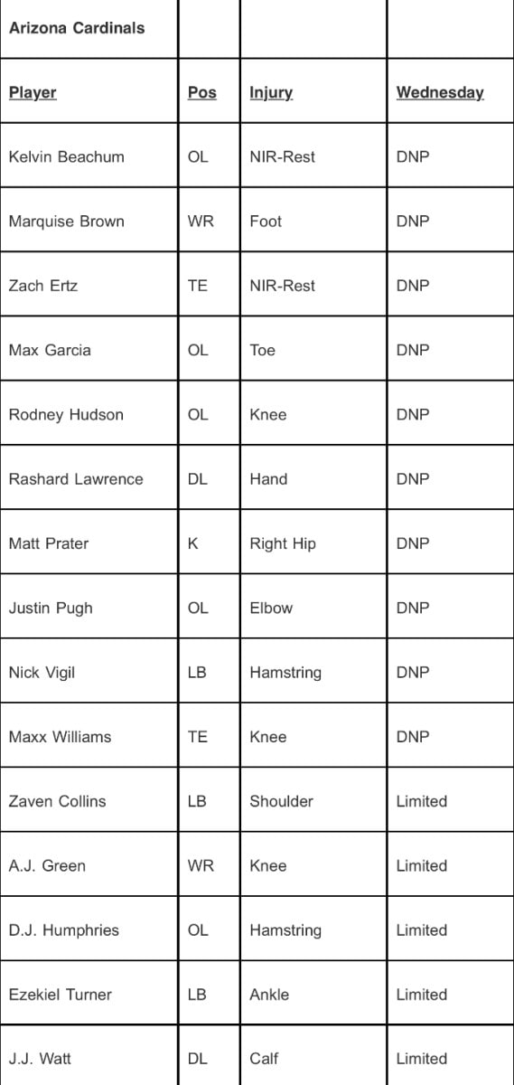 15 Players Appear on Arizona Cardinals Week 5 Injury Report Sports