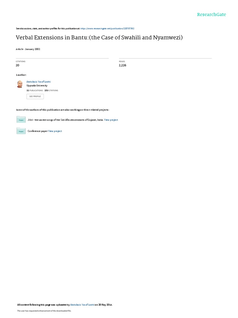 Verbal Extensions in Bantu (The Case of Swahili and Nyamwezi) PDF