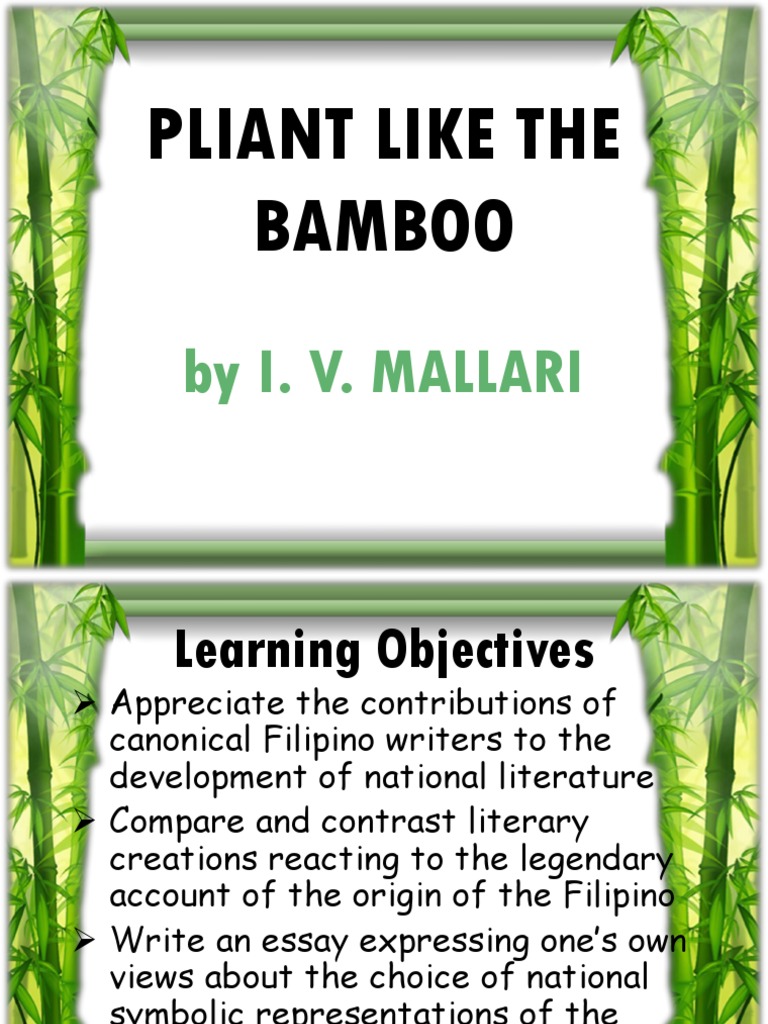 PPT PLIANT LIKE A BAMBOO PowerPoint Presentation, free download ID Which Type Of Literary Genre Is The Pliant Like The Bamboo In its grace, in its ability to adjust itself to the peculiar and inexplicable whims of fate, the bamboo tree is his expressive. There is a story in philippine folklore about a mango tree and a bamboo tree. Central theme of the essay pliant like a bamboo? There is a story in philippine folklore about a mango tree and a. Which Type Of Literary Genre Is The Pliant Like The Bamboo.