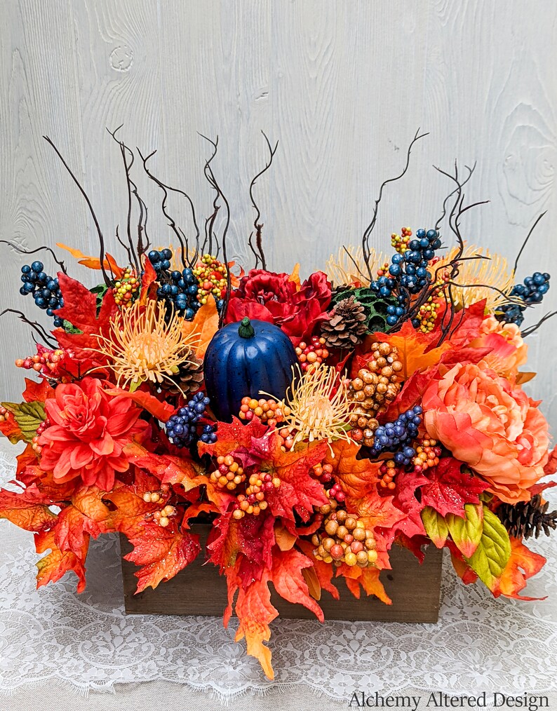 Blue and Orange Fall Centerpiece Blue Pumpkin Table Decor Etsy