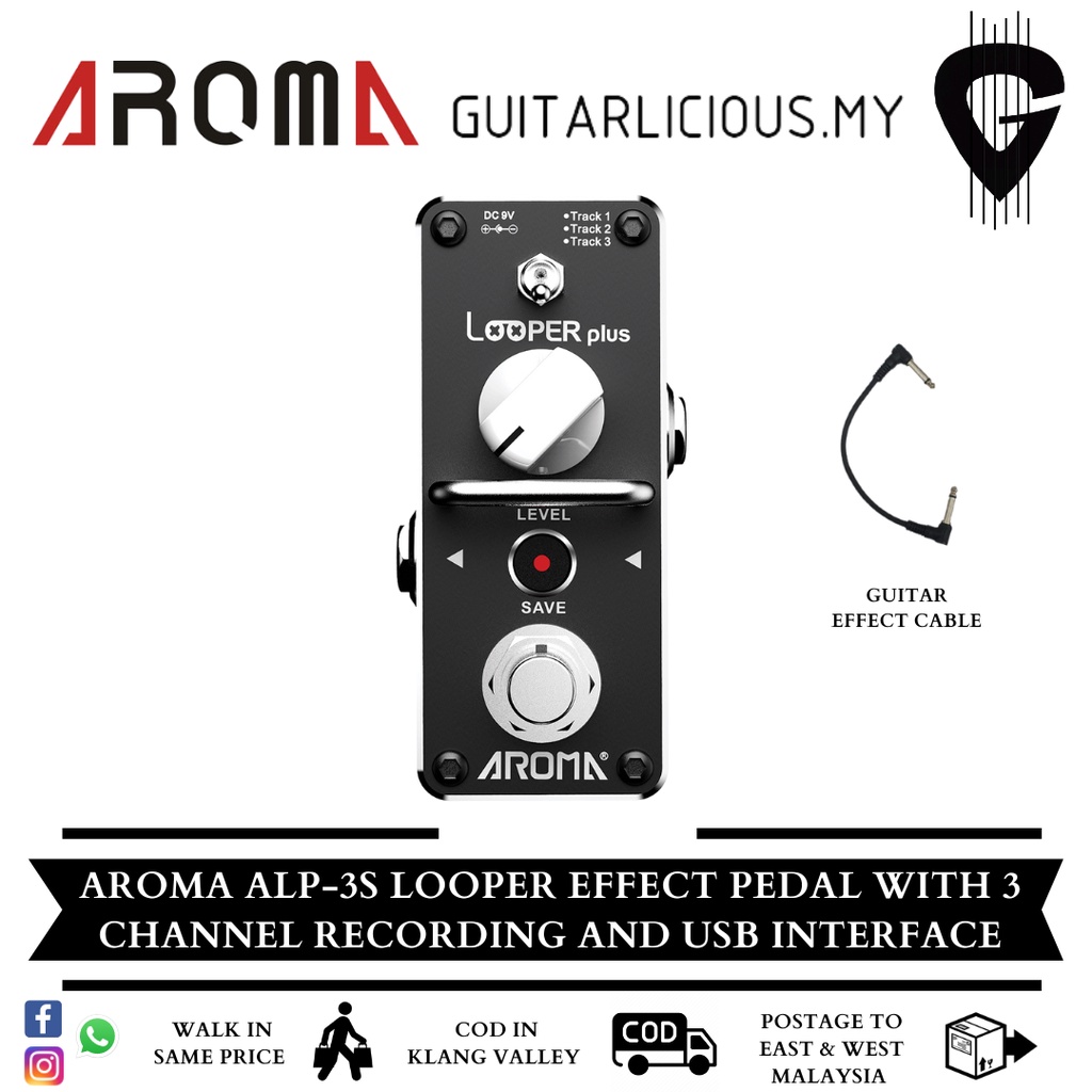 Aroma ALP3S Looper Effect Pedal with 3 Channel Recording and USB