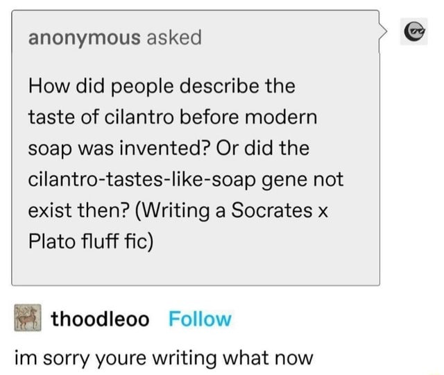 Anonymous asked How did people describe the taste of cilantro before