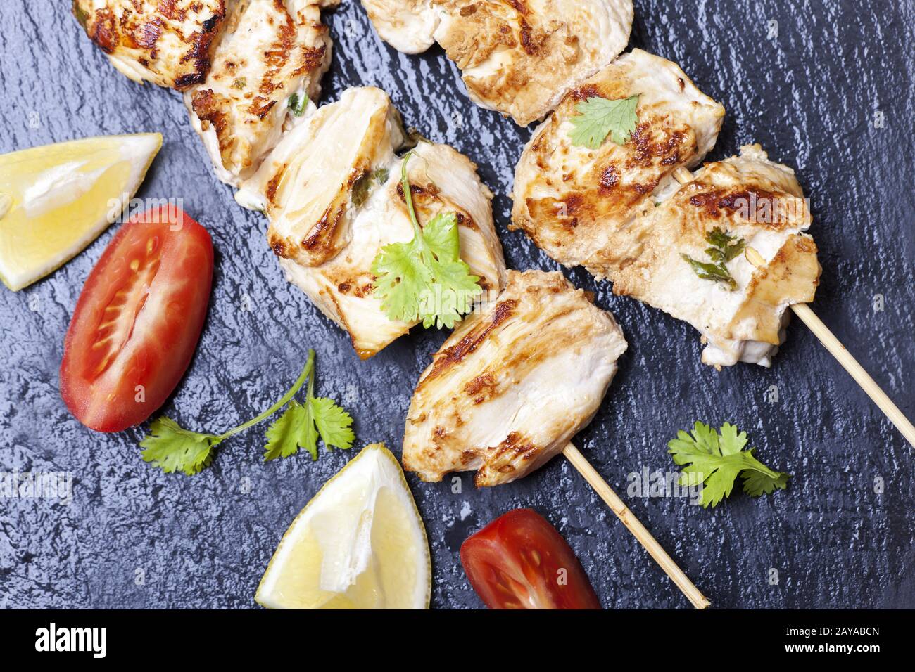 Grilled chicken skewer with coriander Stock Photo Alamy