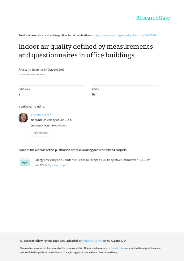 (PDF) Indoor Air Quality Defined by Measurements and Questionnaires In